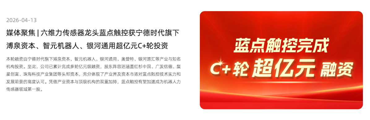 媒体聚焦 | 六维力传感器龙头蓝点触控获宁德时代旗下溥泉资本、智元机器人、银河通用超亿元C+轮投资