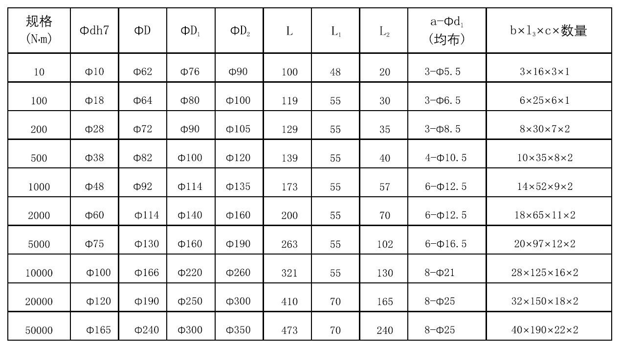 外形尺寸表: